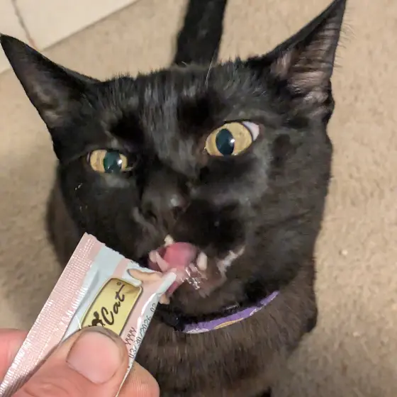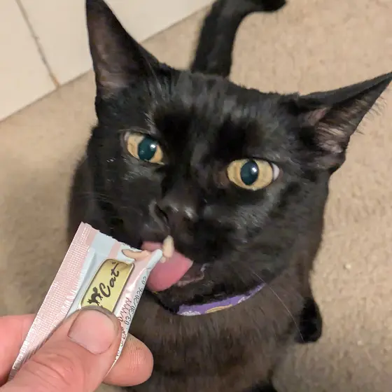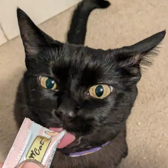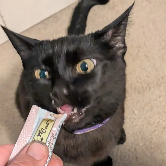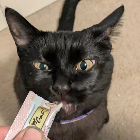Luna enjoying her cat gogurt 😂 She loves it so much😻🐈⬛