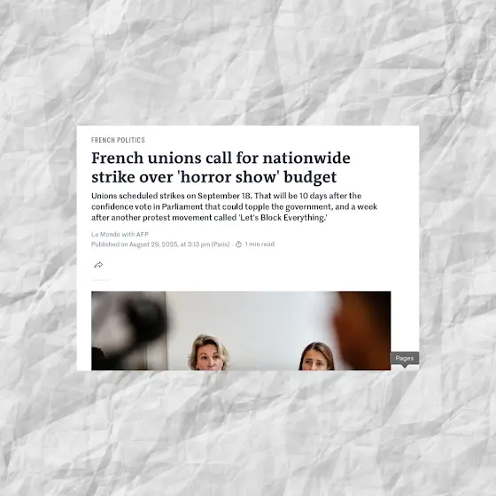Bonjouuur! Big news from France today!! A nationwide protest and strike movement is brewing. Some call it Yellow Vest 2.0, but most know it as "Let's Block Everything". It’s a reaction to the deep cuts in welfare and public services announced over the summer. François Bayrou, Macron’s appointed prime minister, has called a confidence vote in parliament next Monday. Most parties have already said they won’t support him. He’s basically done, but he scheduled the vote two days before "Let's Block Everything" kicks off, hoping to head off a full shutdown of the country. The movement keeps gaining ground, with more initiatives being planned and trade unions announcing nationwide strikes starting September 18. Calls for Macron to step down are growing louder, especially since the government looks almost certain to lose the confidence vote. I'll update you on this and I'm hoping to cover some of the initiatives on the ground. Salut!