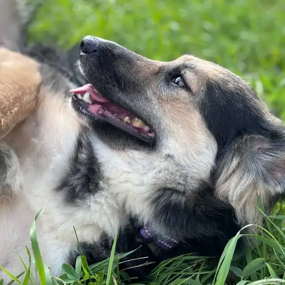 Молодая, веселая, активная собачка, которая любит играть в игру "поймай меня" перед прогулкой, но потом когда наиграется спокойно идет гулять на поводке..