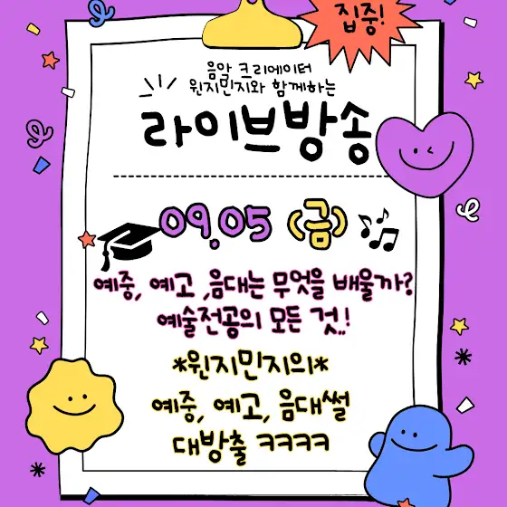 이번주 라이브 방송에서는예중, 예고, 음대 생활을 파헤쳐보려고합니다!!