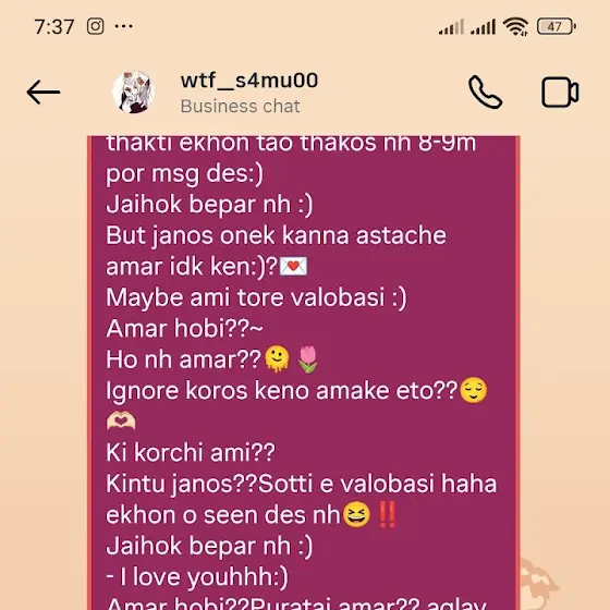 Ahare kosto ashraful er theke I'd nite parteche nah abar ariyan er theke gali khacche amar inbox a aisha chudse je ashraful or I'd hack korche ekhon magir id ashraful er kache O ache abar ariyan er kache Oo..ariyan samu khanki magi r I'd theke kotha bolche ashraful er sathe magi onek try korche or I'd back newar but ashraful jeta korche oy kono kisui a kore parbe nah kichu korte..😇💔