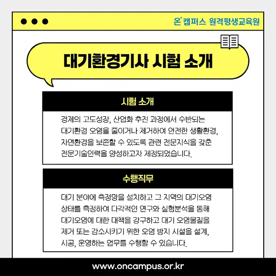 #온캠퍼스 #원격평생교육원 #국비지원 #국민내일배움카드 #대기환경기사 #자격증 #환경기사 #환경공무원 #환경자격증 #올인원