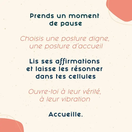 Lis ses affirmations et laisse les résonner dans tes cellules ;