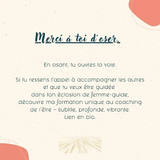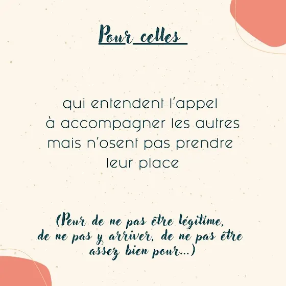 Toi qui entends l’appel à accompagner les autres mais n’oses pas prendre ta place.