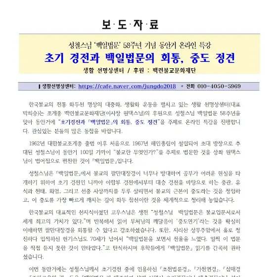 저가 "[성철스님 백일법문]은 어떤 내용을 담고 있나"를 주제로 특강을 합니다.