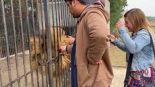 Girl from Poland came to meet our Lion, Mufasa #lion #wildlife #wildanimals #poland