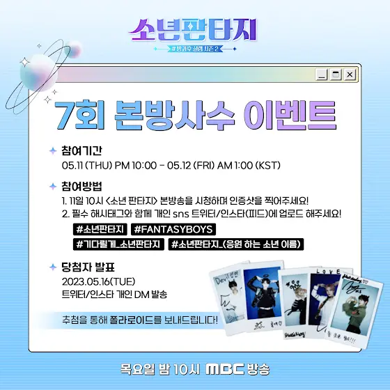 📌 필수 해시태그 : #소년판타지 #FANTASYBOYS #기다릴게_소년판타지 #소년판타지_(응원 하는 소년 이름)