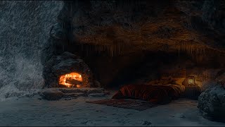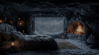 Intense Blizzard & Wind Sounds–Sleep in a Warm Cave with Fireplace & Wind Sounds for Deep Relaxation