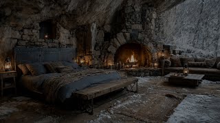 Cozy Fireplace Sounds for Sleep,Overnight Cave Escape ASMR Snowstorm Ambience,Snowfall & Candlelight