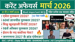 March 2026 Current Affairs | Important MCQ With Explanation | करेंट अफेयर्स मार्च 2026 bt The Eduapp