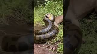 A python fights a cougar