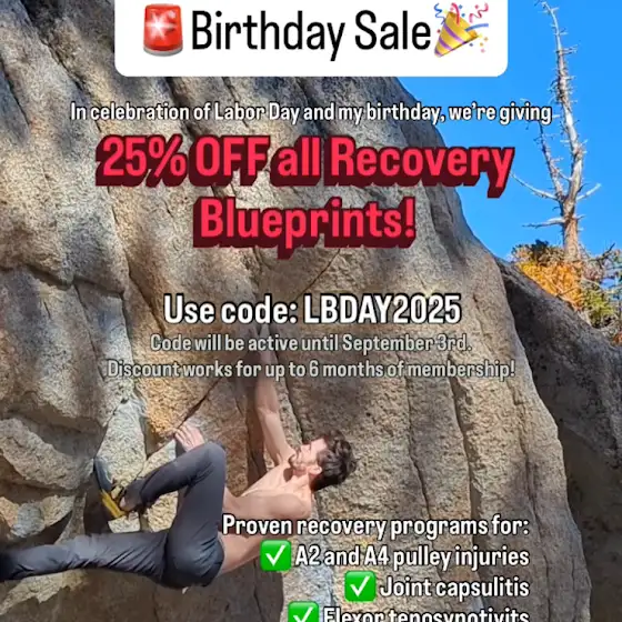 🚨BIRTHDAY SALE🎉 Take 25% off any of our Recovery Blueprints with code LBDAY2025 www.hoopersbeta.com/recoveryblueprint These are proven injury-specific recovery programs for: ✅ A2 and A4 pulley injuries ✅ DIP and PIP joint capsulitis ✅ Lumbrical injuries ✅ FDP injuries ✅ IIPT ✅ Flexor tenosynovitis ✅ TFCC injuries + Finger and wrist bulletproofing programs