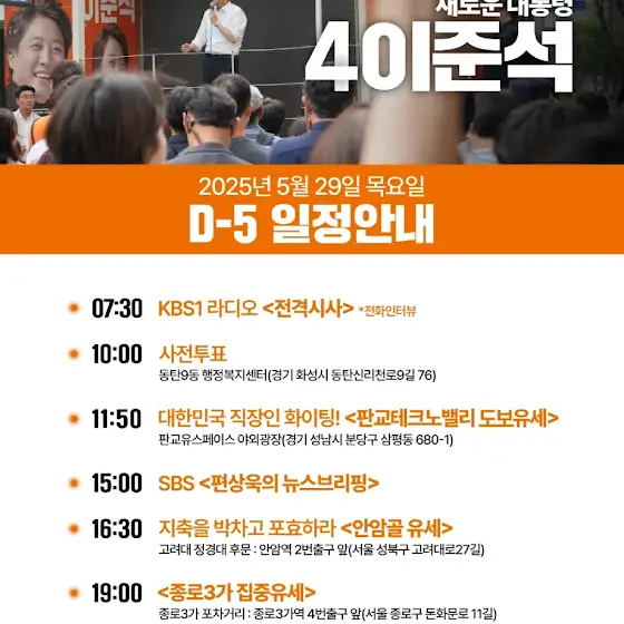 대부분 아시겠지만...오늘 이준석 후보 일정입니다...오늘 저의 특별한 라이브 기대해주십시오...
