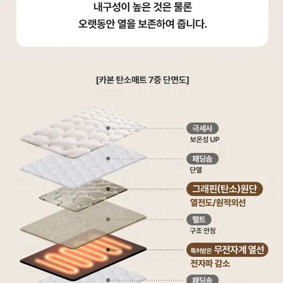 ✔️그래핀 탄소 소재로 매트 전체 고루 열이 분산되어요