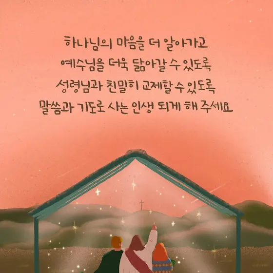 하나님의 마음을 더 알아가고 예수님을 더욱 닮아갈 수 있도록 성령님과 친밀히 교제할 수 있도록 말씀과 기도로 사는 인생이 되게 해주세요.