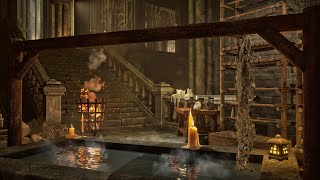 Outdoor Hot Spring Ambience | Japanese Street Bath ASMR | Bath for a Good Night's Sleep, Rain Sounds
