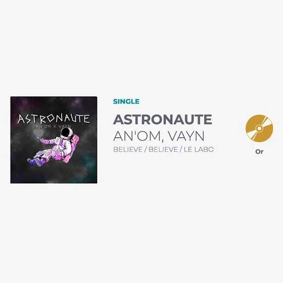 Yo l'équipe, on espère que vous allez bien ! Nous ça va au top, on vient d'apprendre que ça y est, Astronaute est officiellement single d'or ! Quelle histoire de fou... merci pour tout 🙏