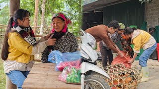 Giang harvests vegetables to sell - The joy of a grandmother touching the baby in her pregnant belly