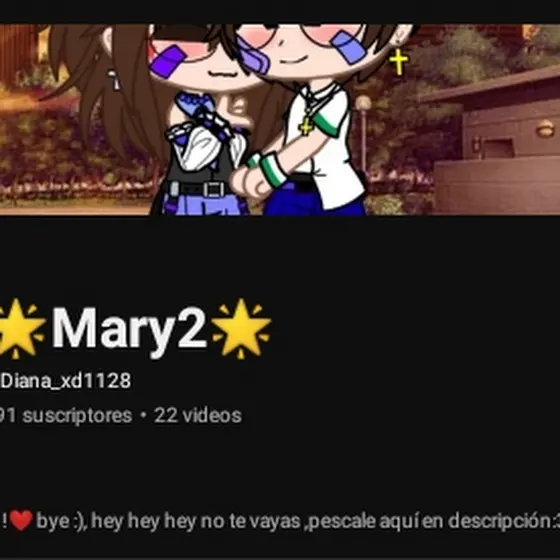 hola XD cómo están soy Mary2 ! y muy pero muy desconocida XD de Diana (es mi nombre jeje)soy leo ,(no mal piensen), soy terca XD soy un poco divertida pero muy pendeja JAJAJA (Toce) mm a y siempre tengo tos pipipi pociblemente en un día nose XD haré contenido de calidad 😎 emmmm ya no se XDD espero que se diviertan con mis videos a última hora jaja y apoyen me denle like a mis papuvideos XD y suscribanse y como le dice la Mary chao chao cuidense :3