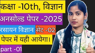 Class 10th Science Unsolved Paper. Chemistry. Set 2. Part 2. Questions that may appear in the pap...