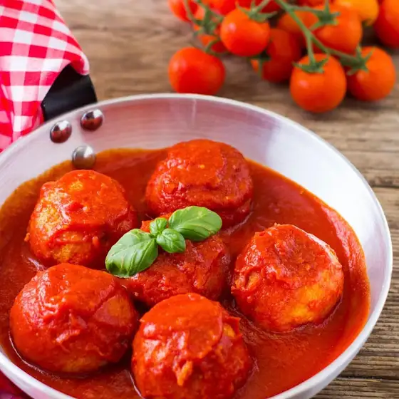 Сформируйте в ладонях 10-12 фрикаделек. Поместите их на сковороду с соусом и накройте крышкой.