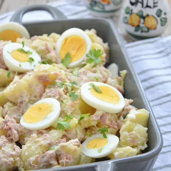 Итальянский картофельный салат с тунцом. Рецепт из серии дёшево и быстро. Можете подавать как закуску, гарнир, основное блюдо.