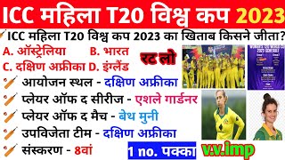 ICC Women's T20 World Cup 2023 | महिला T20 क्रिकेट वर्ल्ड कप 2023 | Current affairs 2023 | Sports gk