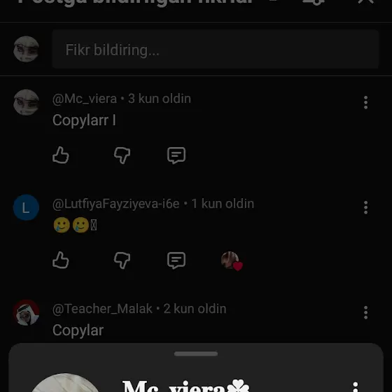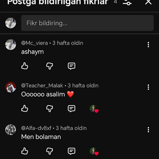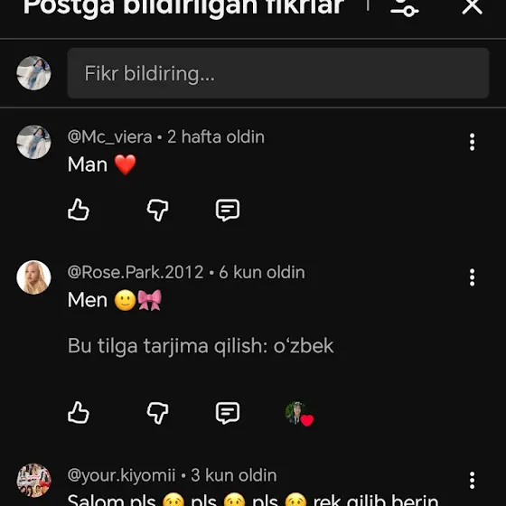 To'g'ri u qizga yozgan Kommentlarim bomid ammo hali ham unda aktivman🫠🌝