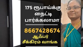 நைட்டி.. 200 ரூபாய் மட்டுமே..சேலைகள் 230..250..275...299..350..399.ரூபாய் மட்டுமே.. சீக்கிரமா வாங்க.