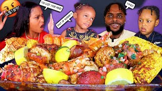 7X SPICY ONE BITE SEAFOOD BOIL MUKBANG CHALLENGE (KING CRAB, MEGA PRAWNS, LOBSTER TAILS) QUEEN BEAST