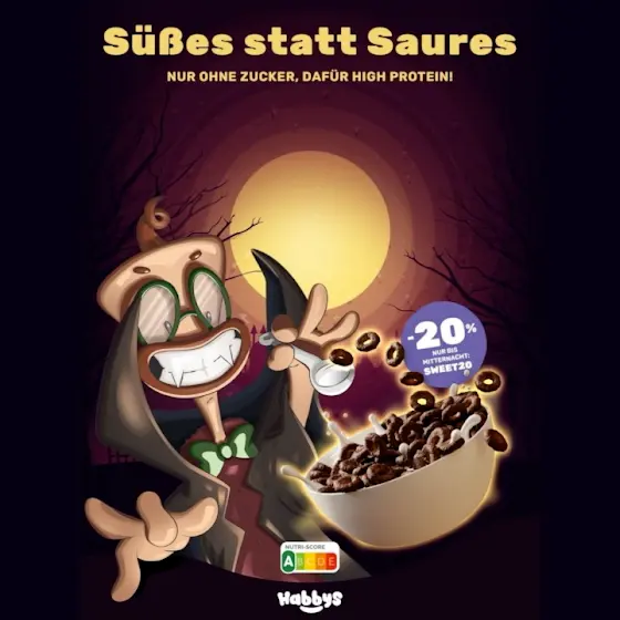 Sichert euch nur noch bis Mitternacht, einen Rabatt von 20% auf die leckersten Cereals im Universum (mit dem Code "sweet20") hier im Shop www.habbys.de