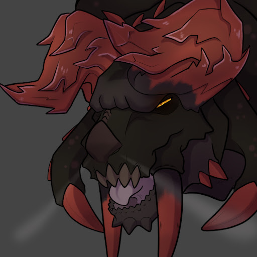 a fully colored drawing of Garcello and Annie from Friday Night Funkin’: HAZY RIVER. Garcello is on Annie’s shoulders, wearing a loose tattered white cloak and chains with shackles on his wrists and ankles. Annie is dressed as Frankenstein, in her beast form. both of their nails’ are painted with alternating black and orange. [end ID]