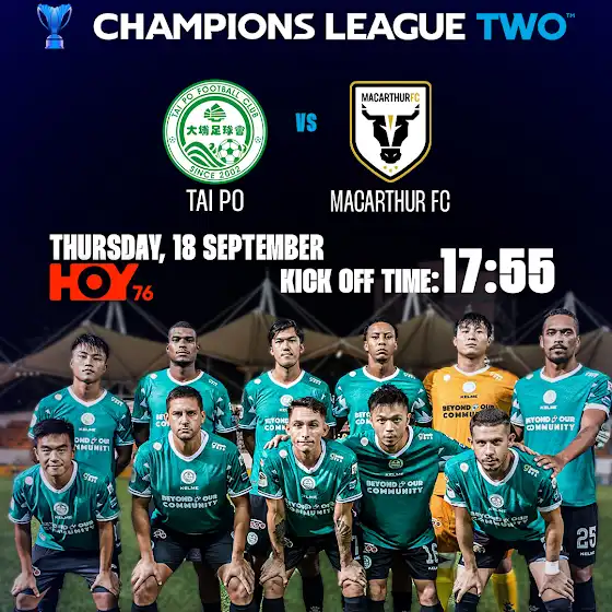 亞洲聯賽冠軍盃二級聯賽 - 大埔 對 FC麥克阿瑟 9月18日 17:55|HOY 76台