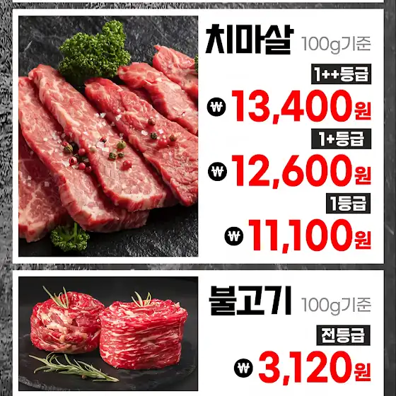 ▶등심 1++등급 100g 기준 11,000원