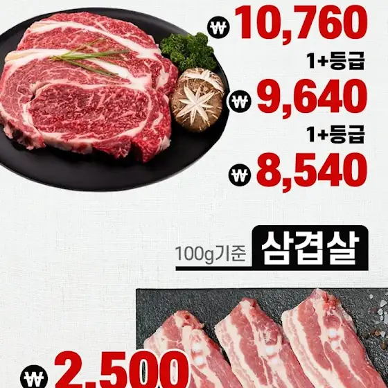 ▶등심 1+ 등급 100g 기준 9,640원