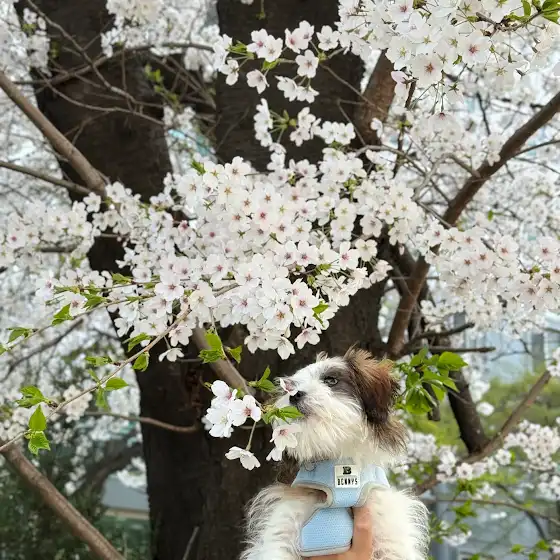 최근 부모님께서 서울에 올 일이 있어 초코도 함께 왔었고 저와 초코는 서울데이트를 즐겼는데요. 그 중 벚꽃을 즐기는 초코 사진 공유드려요. 너무 이쁘죠 🌸🐶