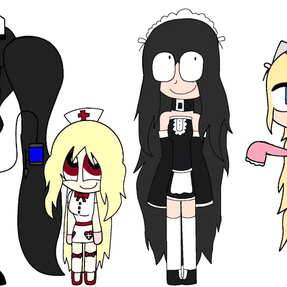 1. Outfit for job (Rosie works as a cleaner and waitress at the same time, Rosalie works as a nurse, Rosemary works as a pilot and Eric works as a baker).