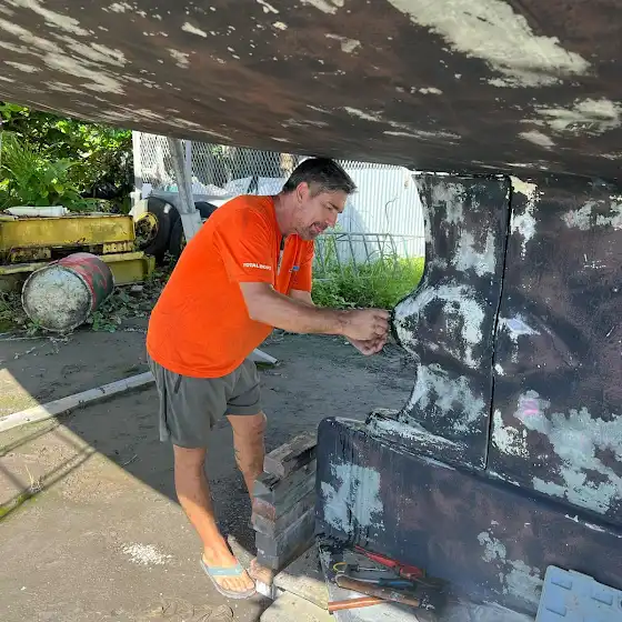 After two weeks of back breaking work Delos is back in the water! With our two year mark approaching in French Polynesia we were faced with the decision of paying import taxes OR sailing somewhere else. I’ve never been a fan of paying taxes I don’t have to so a few weeks ago I left the loves of my life in Australia and headed to Raiatea with my good friend Bill (Calico Skies) who was up for an adventure. Bill left Calico Skies in Fiji, flew to Brisbane for a few days to help out with Delos 2.0 then we caught a jet airplane to Tahiti, slept on the floor of the airport, and carried on to Raiatea. It only took 24 hours. Since Sierra still needed to finish up this term of school and there was lot’s going on with Delos 2.0 Kazza and Sierra stayed behind to hold down the fort while Bill and I accepted the mission get Delos ready. We hit the ground running and replaced the transmission, exhaust, grey water manifold, bilge pumps, fixed the keel, serviced the prop and shaft bearings, serviced the bow thruster, repaired the outboard, sanded the bottom, painted the bottom, painted the boot stripe, repaired and painted Maggie, repaired the boot stripes, fixed the freezer, and so much more. Really that’s just the highlights…. there is an infinite list of things to do after leaving a sailboat in the tropics for 10 months. It was long days filled with back breaking work and long nights filled with mosquito bites and early morning wake up calls from the roosters. But we managed to splash her after only two weeks!!! Sierra and Kazza arrived a few days ago and we’re going to sail to Fiji. Stay tuned and sending much love from Delos in French Polynesia!