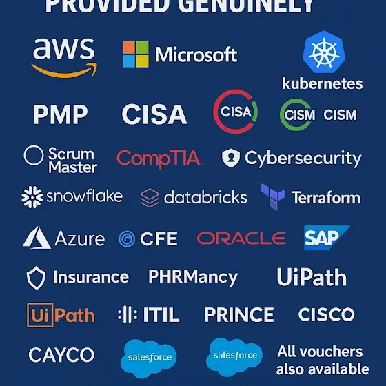 🇮🇳🌐Anyone looking for below certifications and vouchers,Clear Exam in first attempt. ♻️Genuine & fast service ♻️🇮🇳