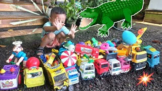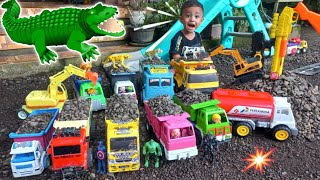 truk pasir excavator | belajar mengenal jenis mainan anak, truk molen,sapi, pororo, tayo, helikopter