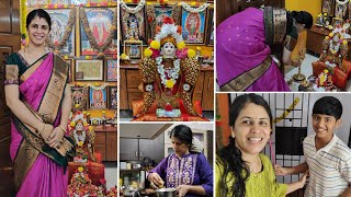 NAVARATHRI DAY 3😍அழகா மடிசார் & Saree la Ready ஆயாச்சு | Navarathri Pooja & Kuthu Vilakku Decoration