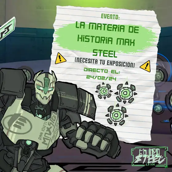 Este sábado 24 en la tarde tenemos transmisión especial con el Equipo de Max Steel Base LATAM. Se trata de una clase simulada, en donde lo más importante es exponer como tú mismo. Para evaluar se tomará en cuenta toda la información disponible que hay de Max Steel, se haya publicado ya en vídeos o aún no.