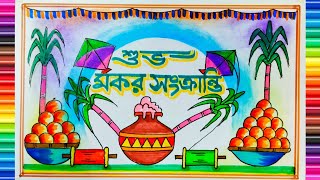 Makar Sankranti Drawing Easy| How to draw Makar Sankranti drawing|Happy Makar Sankranti drawing easy