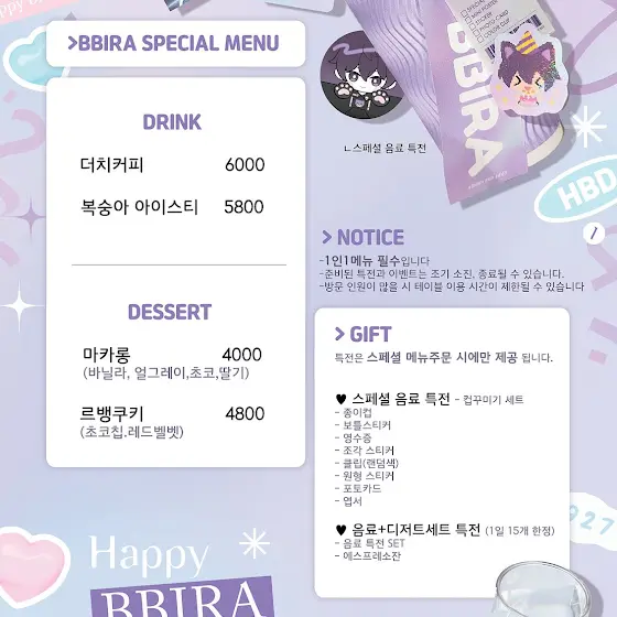 카페 1인 1음료 구매 필수 - 생일 기념 음료 구매시엔 한정 굿즈 증정 (추후공개)