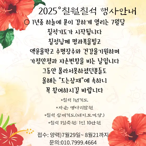 금평당 칠월칠석 행사 공지 올려드립니다!