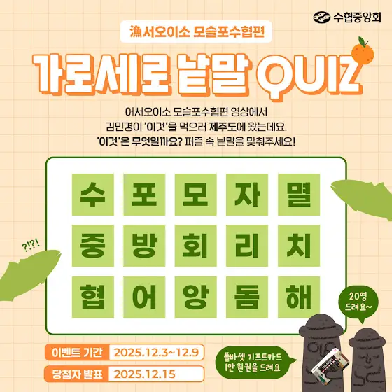 어서오이소 <모슬포수협편> 가로세로 낱말 퀴즈 이벤트💯