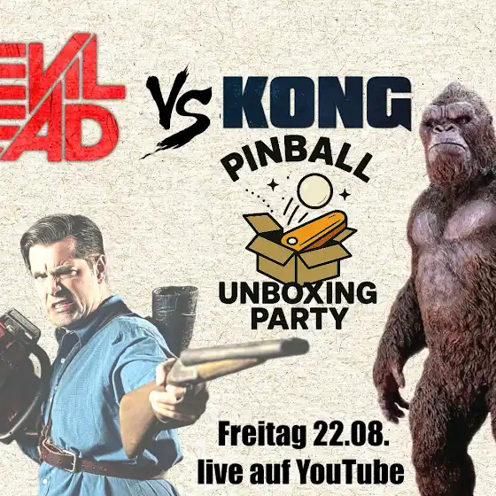 Seid am Freitag live dabei auf YouTube wenn wir eine Pinball Unboxing Party Deluxe machen! Und es heißt: The evil dead VS Kong