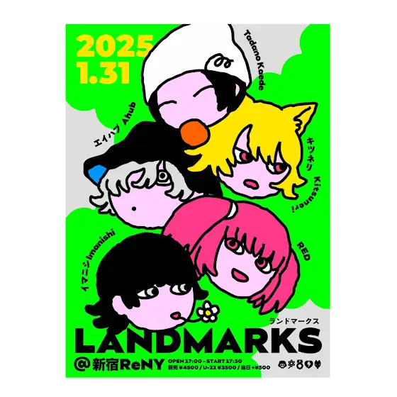 【🎪LIVE出演のお知らせ🎪】5MAN LIVE『 LANDMARKS 』2025年1月31日(金)新宿ReNYOPEN17:00/START17:30出演イマニシ エイハブ キツネリ RED Tadano Kaede1次先行受付<受付期間>2024/11/22(金)20:00〜2024/12/1(日)23:59受付URL : eplus.jp/sf/detail/4228000001?P6=001&P1=0402&P59=1