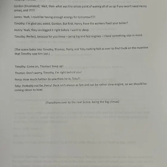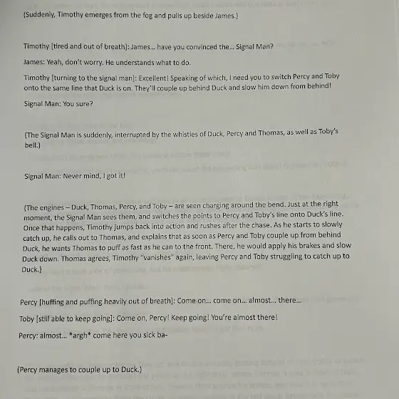 A quick note to @Superlegomatt240 which is how I am very sorry for the one line where it is a huge paragraph. I'm sorry that I'm leaving you with all of that work, but this is only because this is the final chapter to Thomas and Timothy: The Near Downfall. I do know that you're going to do great at the voice work just like you always have! That's why I enjoy working with you!