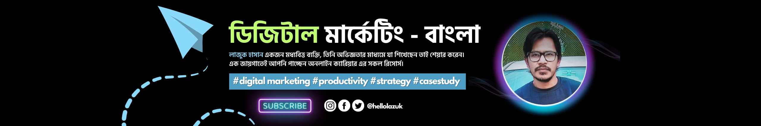 আস সালামু ওয়ালাইকুম, আমার নাম লাজুক হাসান। আমার এই চ্যানেলে আমি মূলত ডিজিটাল মার্কেটিং, অ্যাফিলিয়েট - সিপিএ মার্কেটিং এবং ট্রাফিক জেনারেশন রিলেটেড ভিডিও প্রকাশ করে থাকি। আমার এই চ্যানেল থেকে আপনি ইন্টারনেট মার্কেটিং রিলেটেড বিভিন্ন টিপস, ট্রিক্স এবং স্টেপ বাই স্টেপ টিউটোরিয়াল পাবেন।